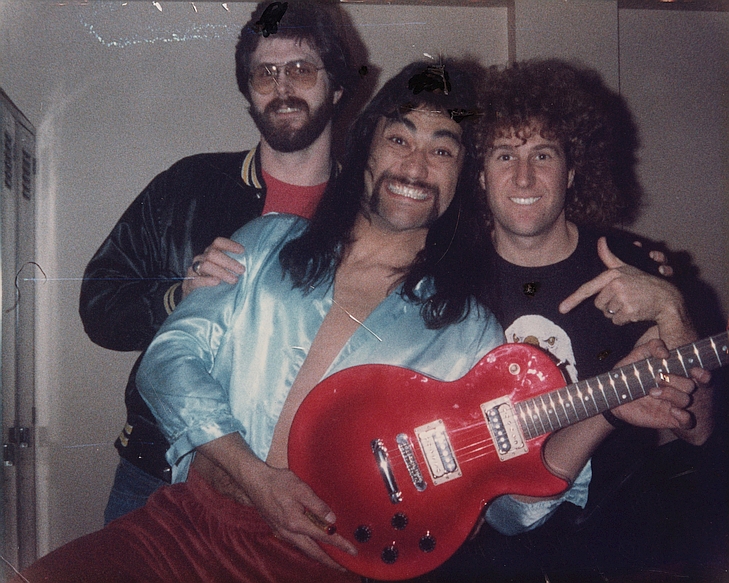 Bill is the director of the Olympia Conservatory of Music. Here, he is photographed backstage at the Seattle Coliseum with KZOK's Jim Robinson (left) and Sammy Hagar (right) after winning a custom Les Paul from American Music in the KZOK Red Rocker contest.