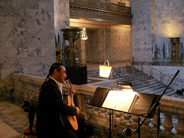 Frank's debut performance was playing classical guitar for a performance of Don Juan at the Washington Center for the Performing Arts. He also performed as guitarist in the late Rick Riley's "Vivaldi Trio" and has also performed locally as a classical guitar soloist. Frank is also an avid bass player having performed in the Cory Buckner Trio and as bassist for DFC, the house band for Walt's Place in McKenna WA for about a decade. Frank has taught group classes in classical guitar performance at The Evergreen State College, and Music 6000, in addition to private studies in several other music stores. He initially co-founded the Olympia Conservatory of Music, and the USA portion of the Karaoke World Championships, KWCUSA. He manufactures a solid body classical guitar along with several other musical items. Each summer Frank hosts the private Caronapalooza Party, a weekend camping and music festival for local musicians, their friends and families. Frank also composes and arranges music and is currently working on producing an album in our studio here. |