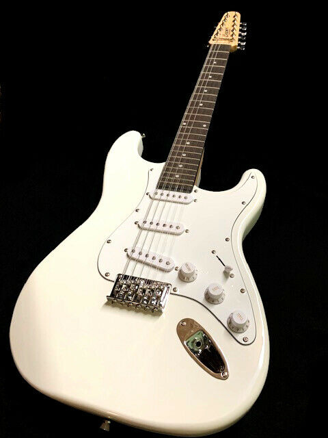 It has three pickups, a volume control, and two tone controls in addition to a 5-way selector switch. String length is 25.5 inches and the nut is 2 inches wide. Mine is white, the perfect color for looking like a Strat if you ask me.